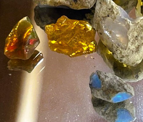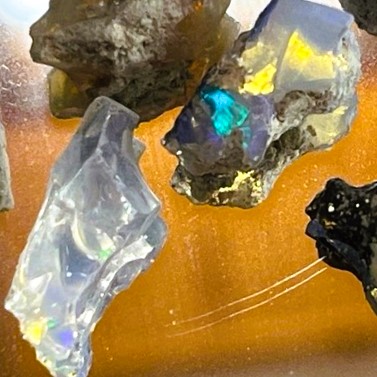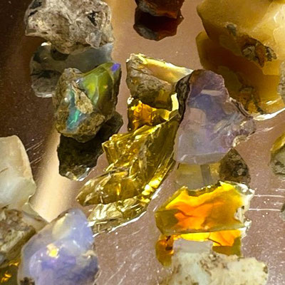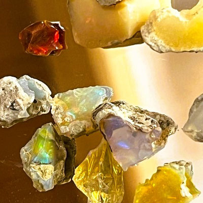 Durch brillante Farbenspiele zeichnen sich diese Edelopale aus. Als kleine Opalsplitter sind die faszinierenden Mineralien im Shop zu erwerben.