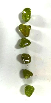 Daneben terrestrische Olivine! Die klare durchscheinende Variante des Olivins wird Peridot oder Chrysolith genannt.